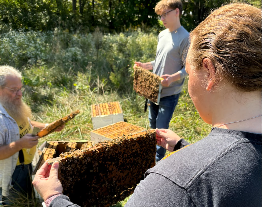 The nearly 10-year-old Blackburn Bee Program blends hands-on learning, sustainability, and scientific inquiry, continuing a legacy that stretches back over a century. As a designated Bee Campus USA, they connect with the local community to help educate and support Carlinville’s Bee City USA members. Additionally, students capture swarms, split hives, practice queen rearing, collect and analyze data, and use sustainable practices to harvest honey.