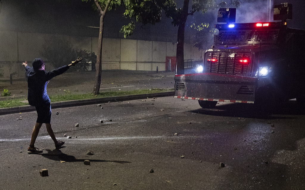 Horn has been photographing demonstrations and protests in Colombia since 2019. A city of nearly four million, Medellín is a place of striking contrasts, marked by lingering conflict, health and economic effects of the COVID-19 pandemic, drug trafficking, and protests over inequality and police brutality.