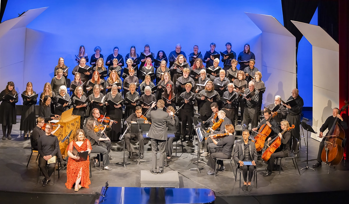 Full stage in Bothwell with three choirs and stringed instruments performing together at the Blackburn Spring Concert 2025